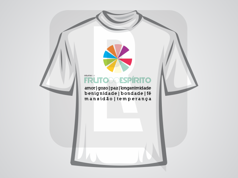 Camiseta inspirada em uma pregação do Apóstolo Parfhio Moraes em que explicava que o fruto do Espírito é dividido em vários gomos, como descrito em Gálatas 5.22, 23a: